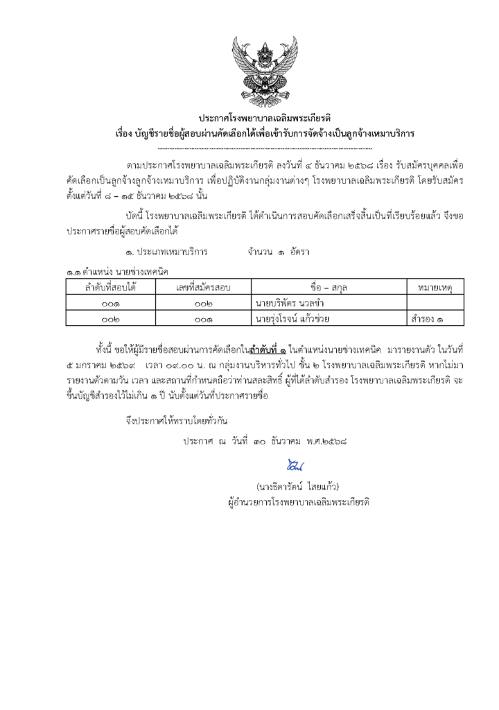 ประกาศบัญชีรายชื่อผู้สอบผ่านคัดเลือกได้เพื่อเข้ารับการจัดจ้างเป็นลูกจ้างเหมาบริการ (นายช่างเทคนิค) 30 ธ.ค. 256830 ธ.ค. 2025sunข่าวรับสมัคร ประกาศบัญชีรายชื่อผู้สอบผ่านคัดเลือกได้เพื่อเข้ารับการจัดจ้างเป็นลูกจ้างเหมาบริการ (นายช่างเทคนิค) ลิงก์ไฟล์ประกาศ