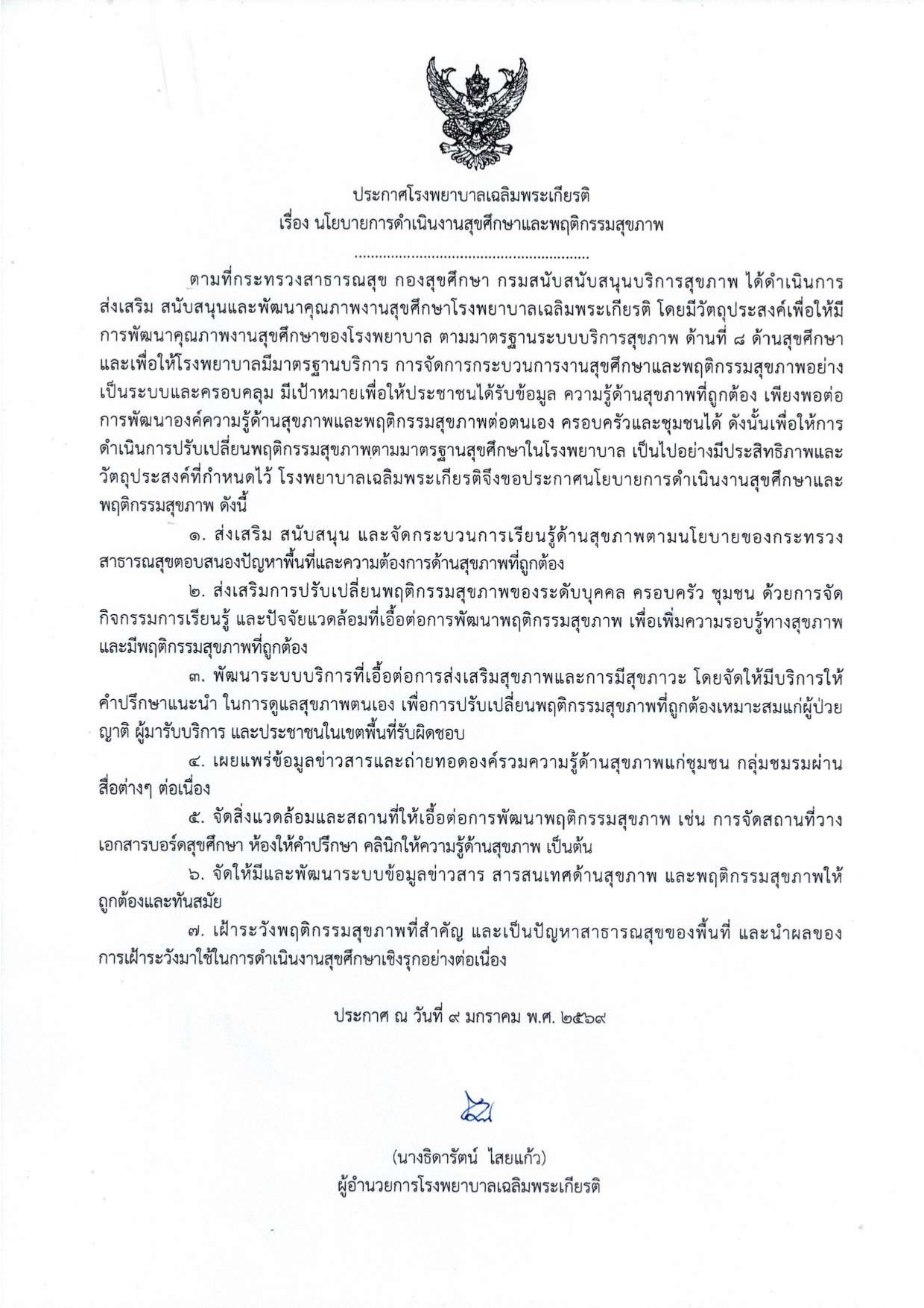 นโยบายการดำเนินงานสุขศึกษาและพฤติกรรมสุขภาพ
